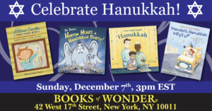 Celebrate Hanukkah! Meet me at Books of Wonder in NYC, Sunday Dec. 7th at 3 pm!